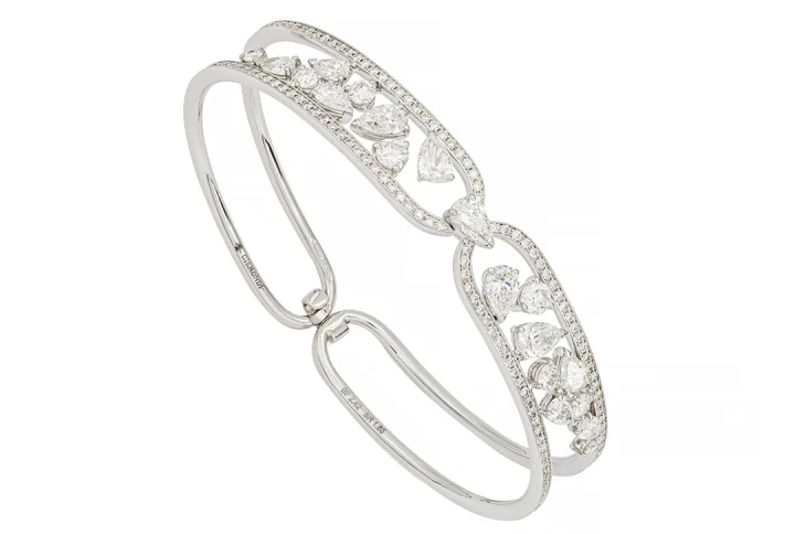 Il bracciale in oro rosa e diamanti, ispirato ad una graffetta, simboleggia il primo passo di un’unione delicata e preziosa.